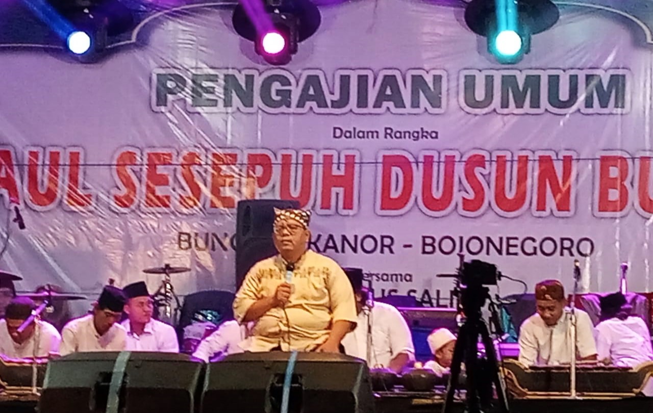 “Pengajian umum, yang di dalamnya ada tahlil dan doa bersama, bersholawat dan pengajian umum menghadirkan KH Agus Salim dari Pondok Pesantren Al Khoziniyah, Sumbertlaseh, Dander dan didampingi Pelawak Kondang Cak Komet dan Cak Dodok, merupakan bentuk kerjasama yang baik antara Pemdes Bungur, Panitia dan warga Desa Bungur, khususnya warga Dusun Bungur sini,” kata Pj Kepala Desa Bungur Hariyanto, Selasa (14/10/2025) malam.