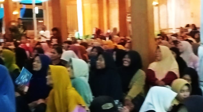 Saat Sudwam didaulat naik di atas panggung dengan ditemani Maftukhan anggota DPRD Bojonegoro Fraksi Gerindra, yang juga adik kandungnya, Mantan Wakil Bupati Bojonegoro Budi Irawanto dan Natasya anggota DPRD PDI Perjuangan Bojonegoro yang juga masih kerabatnya itu.