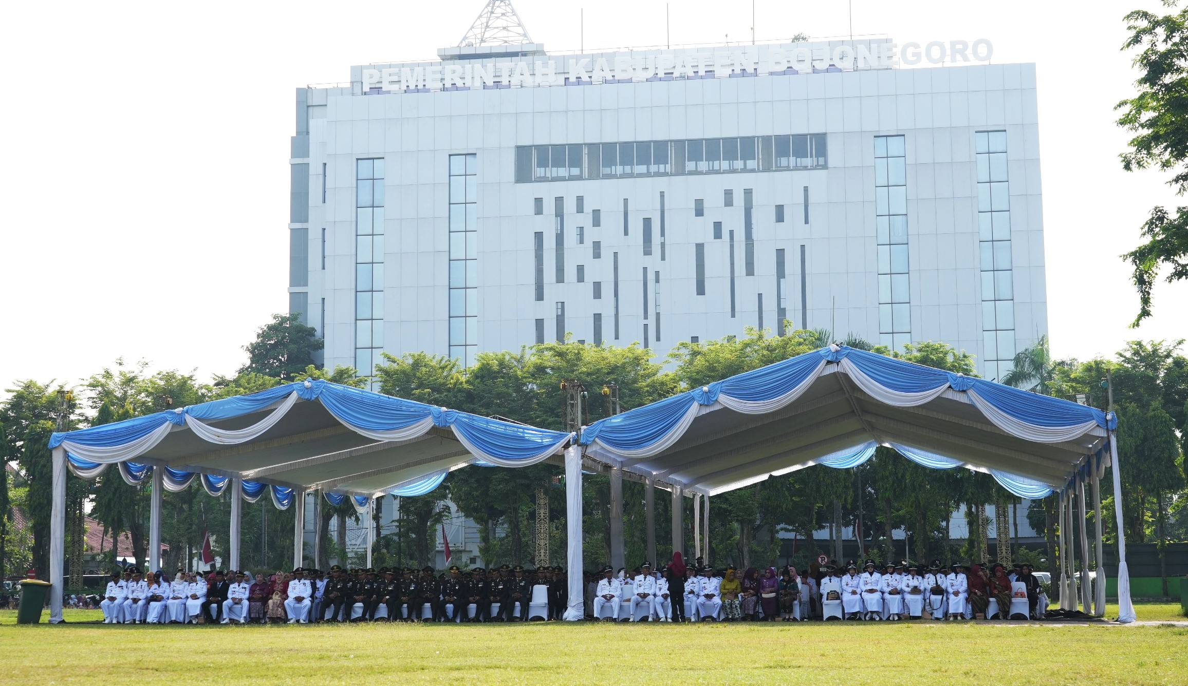 BOJONEGORO (RAKYATINDEPENDEN) – Upacara peringatan Hari Jadi Bojonegoro (HJB) ke-348, Senin (20/10/2025), digelar di Alun-alun Kota Bojonegoro, Kabupaten Bpjonegoro, Jawa timur.